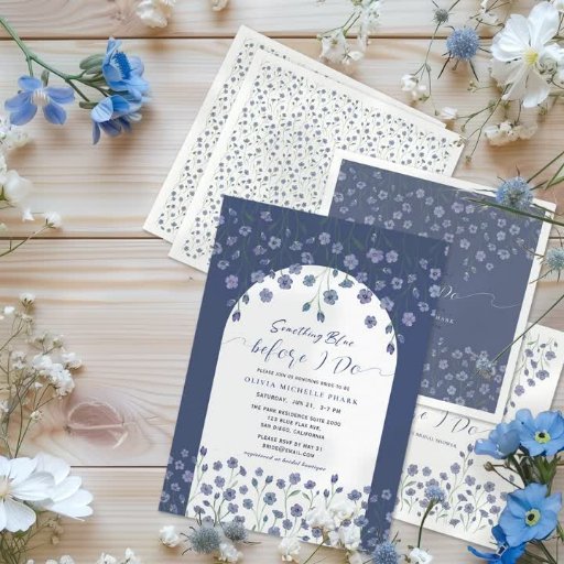 Något blått innan jag gör Blommigt Möhippa Inbjudningar