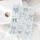 Coquette blå slinga tema bröllopsfest inbjudan kort med illustration av band och hjärtan. Texten säger "Något blått innan jag gör".
