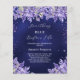 En marin blå bakgrund, blå färg är ojämn. Dekoreras med lavender gräns och färgad faux glitter stoft. Anpassa och lägg till information om namn och party. Text: Något blått före mig. 1 lakan = 1 inbjudningskort för möhippan tryckt kant i kant.