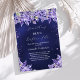 En marin blå bakgrund, blå färg är ojämn. Dekoreras med lavender gräns och färgad faux glitter stoft. Anpassa och lägg till information om namn och party. Text: Något blått före mig.