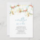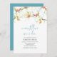 Den här blommigten inbjudningskort för möhippan har den brud som ska vara namn med ord "Nåt blått före I gör" i en handskriven skripttypografi av snyggt med händelsedetaljer i ett klassiskt grått-serif-teckensnitt på en skarp vit bakgrund med en överkant av vattenfärgsvita magnoliska blommor. Kortet inbjudan går tillbaka till en komplementär tropisk turkos färg. Ett botaniskt men elegant val för te party, luncheon eller brunch och bubble möhippa firande i sydklimat eller Florida. Om du vill se hela sviten av Victoria Grigaliunas besöker du www.zazzle.com/dotellabelle