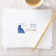 Elegant något Blå Möhippa-adressetikett med blå kruka och kalligrafi-skriptcitattecken.