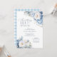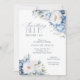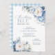 Något blått innan jag Do Inbjudningskort för möhippan har vackra blå blommigtar, med en söt gingham tillbaka.