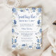 Ställ in scenen för en möhippa för elegant med vår Watercolor Dusty Blue Blommigt Inbjudningskort för möhippan. Den här designen, som har delikata vattenfärgsdammiga blå blommigtar, tillför lite sofistikering till firande före bröllop. Samla dina kära för en minnesvärd och snyggt möhippa