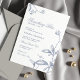 Elegant botaniskt mjukt, dammigt blått vintage botaniskt grenar inbjudningskort för möhippan i en delikat färg palett med vit pastel.