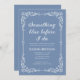För den blivande bruden som kastar ett eftermiddagste party i stil på den vackra möhippan om något blått innan jag gör det. Inbjudningskort för möhippan är i pulverblått och har en ornat, vintage stil gräns ram. Inbjudningskort för möhippan är elegant och klassiskt och det är för den blivande bruden som vill ha en elegant och lugn och mer intim möhippa. Inbjudningskort för möhippan innehåller exempeltext för hur inbjudningskort för möhippan kan se ut. Det är lätt att ta med information om möhippans händelser i personligen. Det finns tre textrutor där du kan redigera texten för att inkludera namn och händelseinformation. Den text som börjar med "gå med oss..." kan behållas som den är eller redigeras i kostym. För den blivande bruden som kastar något blått innan jag gör möhippa. Kontakta oss via Zazzle om du vill ha några skräddarsydda eller anpassade förfrågningar.