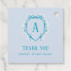 Säg "Tack" till dina bröllopsfestgäster med denna anpassade presenttagg. Denna handritade design har en blå och vit blomsterkrans med ett initialmonogram. Denna design är perfekt för en "Something Blue" bröllopsfest. De känsliga vita blommorna påminner om hortensior och gips. Denna eleganta och tidlösa monogramkransdesign kommer säkert att sätta den perfekta tonen för din bröllopsfest. Du kan hitta matchande design i min Zazzle-butik, Ashlee Townsend Design.