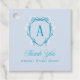 Säg "Tack" till dina bröllopsfestgäster med denna anpassade presenttagg. Denna handritade design har en blå och vit blomkrans med ett initialmonogram och ett elegant skrivsätt. Denna design är perfekt för en "Something Blue" bröllopsfest. De känsliga vita blommorna påminner om hortensior och gips. Denna eleganta och tidlösa monogram-kransdesign kommer säkert att sätta den perfekta tonen för din bröllopsfest. Du kan hitta matchande design i min Zazzle-butik, Ashlee Townsend Design.