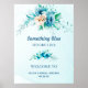 Något blått innan jag gör Möhippa tema - Välkomstskylt för Blommigt med blå vattenfärg - Möhippa!
