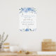 Något välkomsttecken för Möhippan Blue Blommigt. Välkomsttecken för elegantens dammiga blåa blommigt möhippa. Vackra handmålade vattenfärgblommor i baby blue och dammiga blå perfekter för vår, sommar och fall-möhippor. Matchande objekt är tillgängliga.