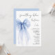 Elegant inbjudningskort för möhippan med en vattenfärg av en stor blå coquette-båge och "något blått före mig" i ett chic-skript.