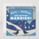 Fira din vinterbröllopsfest med denna lätt uppdaterade mall. Fyll helt enkelt i namn, ålder, datum, tid, festlokation och eventuella RSVP-anteckningar eller annan information. Ändra från "Marc och Anthony gifter sig!" till "Willoughby-familjen bjuder in till julfirande!". Finns i många utföranden för alla tillfällen. Den charmiga designen har en mängd olika blå, krämfärgade och vita snöflingor som faller i en kuperad vinterscen med två älskande fåglar och ett ljust rosa rött och lila hjärta som svävar ovanför deras kärleksfulla blick.