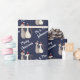 Unik, röd och marin personlig jul papper med söta kattungar i kärlek med julhattar och anpassningsbar efternamn.