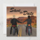 Den här unika Save the Date-inbjudan har en vacker motorvägssnål med en pojke och ett flickpar på motorcyklar som håller händer. Pojken är blond och flickan är en brunett. Andra alternativ för hår färg finns tillgängliga på begäran! Perfekt för ett biker par! Anpassa enkelt detta Spara datum med all information om bröllop.
