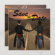 Den här unika Save the Date-inbjudan har en vacker solnedgång med en pojke och ett flickpar på motorcyklar som håller händer. Paret har brunt hår. Andra alternativ för hår färg finns tillgängliga på begäran! Perfekt för ett biker par! Anpassa enkelt detta Spara datum med all information om bröllop.