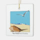 Ornament med en tvådimensionell Horseshoe Crab med havsgull bild som flyger över stranden med vågar. Datum Anpassade på baksidan. Nags Head, North Carolina på framsidan i Baskerville Font
