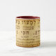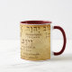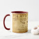 Hebreiska Mugg i versen: "LORD är bra. En högborg på dagen för problem. Han känner dem som tar sin tillflykt till honom." - Nahum 1:7 med översättning och translitterering på engelska