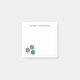 Ett handligt 3 x 3 tum klibbigt anteckningsblock för en stickare, som är dekorerat med en färgad teckning av 3 bollar garn och ett par stickande nål. Garnet är färgadens grönt, rosa och blått. Du kan anpassa anteckningsblocket med ditt eget namn och ord. Teckning utfördes för hand och är unikt för LyricalSixties på Zazzle.