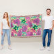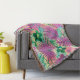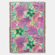 Fuchsia rosa och emerald grönt colorway. Vackra tropiska löv och blommor är målade med en regnbåge av vattenfärger. Denna design påminner om Aloha Shirt-utskrifterna från 40- och 50-talen. Den här designen levereras i flera unika färgbanor.