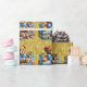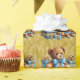 En vacker brun nalle med blåa blåsor, som gör helgdagarna till en liten pojke lyckliga