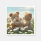 Två vackra bruna nallar sitter mitt i ett fält av daisyn, där var och en håller en fluffy dandelion.