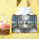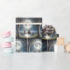 Pojkar och nallar sitter på en träsvinge, som tittar på ett stort, ljusstrålande måne över en serenkropp av vatten