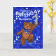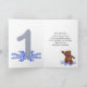 Den lilla, lilla bruna nallen med blå böld som dansar genom blått ljus och som håller ett glittrande nummer är en roligt på första födelsedag hälsning för den speciella pojken i ditt liv med namn på kortets framsida. Anpassa namn på fram- och insidan av sidan med hjälp av de mallar som finns. Ursprunglig design av Anura Design Studio.