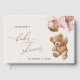 Lägg till en personlig beröring till babyduschen firande med den här snyggten och de minnesvärda party-objekten! Utformningen har nalle med rosa ballonger på beige bakgrund.