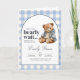Nalle Baby Shower Inbjudan, Blue Gingham Baby Inbjudan