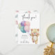 "Vi kan vänta tidigt". Fira med den här nallen, den där babyduschen party! Söt nalle med vattenfärg och färgstarka ballonger. Bakgrund med vattenfärgsblått rosa himmel. Matchande objekt är tillgängliga.