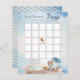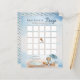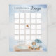 Det är en pojke och vi kan bearly Wait Baby Shower "Bingo"-textspel med en söt liten björn klädd i en blå regnrock med ett blått paraply. Han är sitta bredvid en puddle i vatten som leker med sina träblock bland rötter, gräs och svampar. Sammansatt design efter Helgdag Hearts-design.