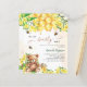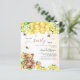 En vit och guldfärgad bakgrund med snyggt. Dekorerad med bin, en nalle, smälter honung och honungskomb med blommigtar, blommor och en honung burk. Med texten: Vi kan vänta tidigt. Anpassa och lägga till namn i mamma till att bli. Könsneutralt. 1 lakan = 1 inbjudan tryckt kant till kant.