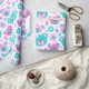 Roligt pastellskuggor rosa och akva teal blue grönt nalle ansikte och grafiska blommor upprepar mönster födelsedagslagning papper, perfekt för flickor 5:e födelsedag. Personliggör med egna födelsedagsflickor namn och ensiffrig ålder, för närvarande Evelyn 5. Grafiskt designat av Sarah Trett.