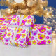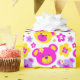 En roligt ljusa nalle ansikte och grafiska blommor upprepar mönster-presentens perfekt för flickor, födelsedagar eller andra presenter i ge tillfälle. Detta ursprungliga mönster är unikt designat av Sarah Trett.
