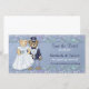 Nallar för att skapa bra brud och triom. Det här stiliga paret är klädt i deras bröllop-finess. Han i sin tuxedo och top hat och hon är i sin bröllop-grav och slöja. Den vackra ljusblå bakgrunden har en böjd blommigt med en underbar, detaljerad blommigt accent gräns. All text är redo att anpassa.