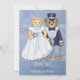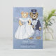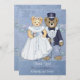 Nallar för att skapa bra brud och triom. Det här stiliga paret är klädt i deras bröllop-finess. Han i sin tuxedo och top hat och hon är i sin bröllop-grav och slöja. Den vackra ljusblå bakgrunden har en böjd motiv för blommigten med en vacker blommigt accent gräns på framsidan och baksidan. All text på fram- och baksidan är det redo som du kan anpassa.