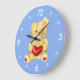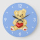 Anpassadets nalle med en söt nalle som håller ett rött hjärta och hypnotiserar dig med dess blinkande bländning, på mjuk blå bakgrund. Den här vackra nallens barnklocka skulle vara en underbar för barn eller någon du kärlek.