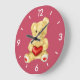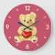 Anpassadets nalle med en söt nalle som håller ett rött hjärta och hypnotiserar dig med dess blinkande bländning, på mjuk blå bakgrund. Den här vackra nallens barnklocka skulle vara en underbar gåva till flicka eller någon du kärlek.