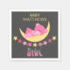© 2018 Socialite Designs. Cute rosa nalle sover på måne-babyduschnapkin. I designen finns också en stjärnbanderoll och texten "flicka" hängande från banderollen. Anpassningsbarna innehåller också ett textområde där du kan lägga till ytterligare text.
