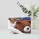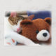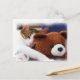 det här söta vykortet från ett sött tabby katt som sover med en nalle. Perfekt för hela djur älskare