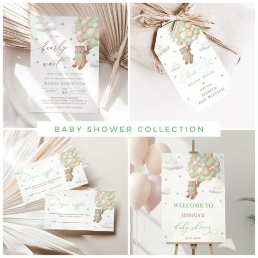 Teddy Bear with Green Balloons Baby ShowerDesignad av A S