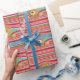 Cute-brun nalle i rosa och vågrät av och grönt i rand. Kan användas för baby-gåva eller födelsedagspresent.