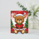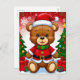 Cute nalle i festive Santa attire omgiven av Juldekorationer, gåvor och träd. En levande helgdag illustrerar glädjen och värmen i presenter och firande.