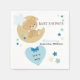 Cute pojke duschar med en hedervärd nalle tecknad sitta på måne med blått hjärta och med en båge och stjärnor i mörk och ljusblå och grädda färg. Täckande och snygga babyduschdesign. Enkel att anpassa genom att ersätta texten med din egen.