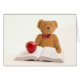Ljusbrun nalle lär klassen med sitt bok och appa söta utbildare som hälsar på kortet