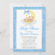 Nalle Måne Blue Glitter Baby Shower Inbjudningar