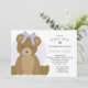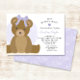 Nalle med Cute Lila Bow Girl Baby Shower Inbjudningar