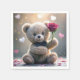 En flytande nalle med en vanlig svart bågslips håller en enda röd ros med lång stam omgiven av mjukt glödande hjärtformer.