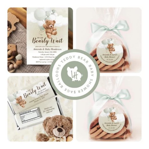 Sage Balloons Teddy Bear Baby ShowerDesignad av Amanda Cudnik