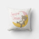 Den här designen är ett sött kuddeval för baby och har en söt nalle som vilar på ett halvmåns måne i en rosa hatt och texten "Sweet Dreams". Kudden finns också i blått.